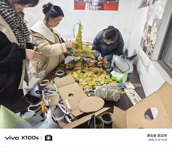 (图为开展“拾叶造趣,手工传情”——落叶手工DIY专场活动现场)