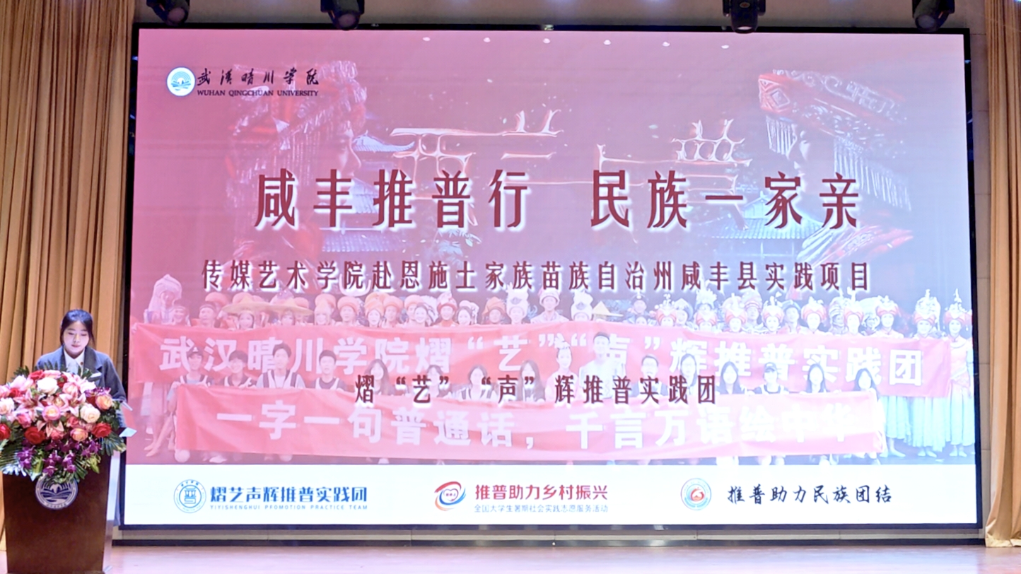 “熠艺声辉推普实践团”实践团队开设《推普集训营》培养全能实践人才,扎根乡土。通过传承文化、打破场景局限与新媒体传播,实现推普直抵人心。并为实现“单项推广”到“双向滋养”,搭建多语言共生的彩虹桥而共同奋进。