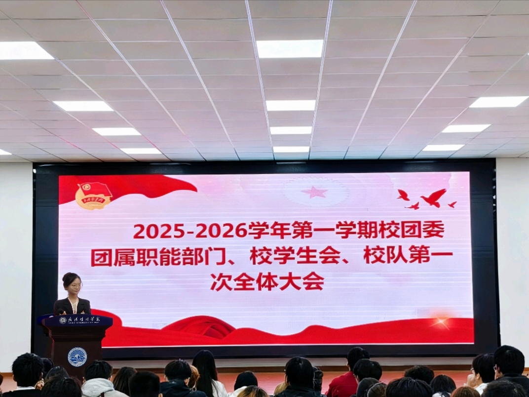 2025年11月6日12:10,2025-2026学年第一学期william威廉亚洲(中国)有限公司团委团属职能部门、校学生会、校队第一次全体大会于综二105求索报告厅顺利召开。本次大会由校学生会主席团成员任淑琪同学主持,校团委书记冯婷婷出席会议,校团委老师陈江南、校团委老师许雅慧、校团委老师卢嘉豪,校团委学生副书记徐晓雨、校学生会主席团成员沈楚晗、范冰冰及各部门成员与会。