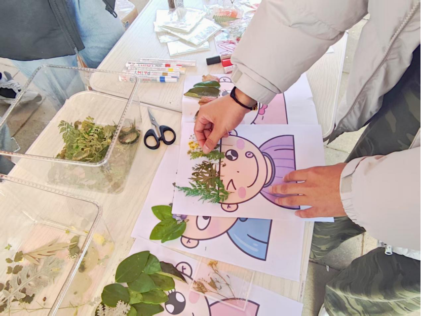 师生有序领取透明收纳盒后,前往校园落叶密集区域拾叶,不仅将区域内落叶清理整洁、收集数千片完整树叶,为校园保洁工作减负,更储备了后续创作所需的“天然素材”,让劳动实践与秋日赏景实现双向融合。