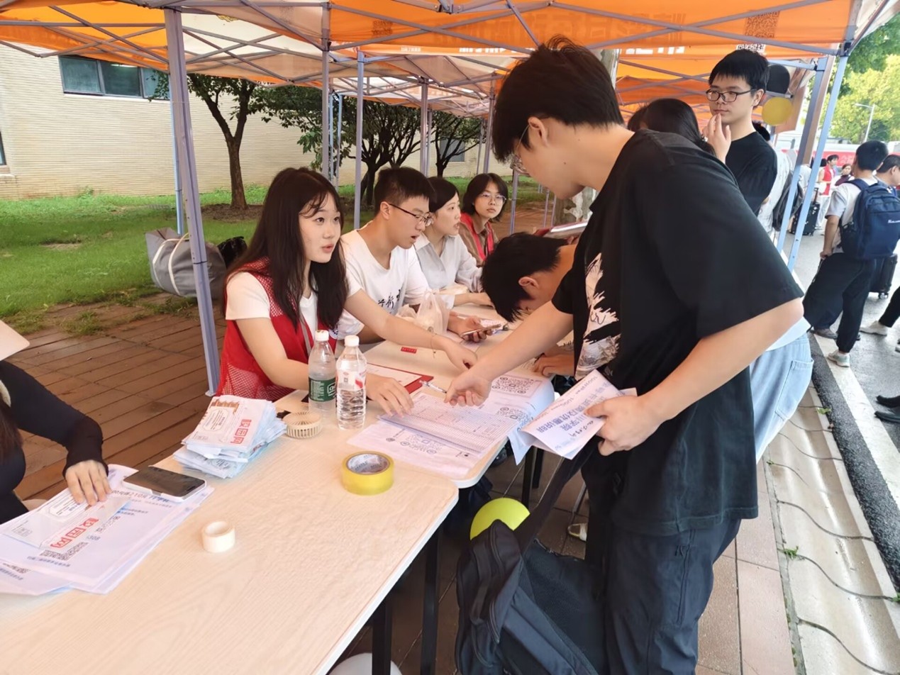 志愿者迎新工作正热火朝天地开展