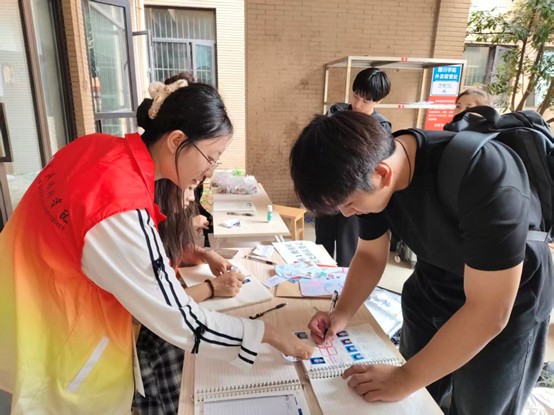 (志愿者为新生进行住宿登记)