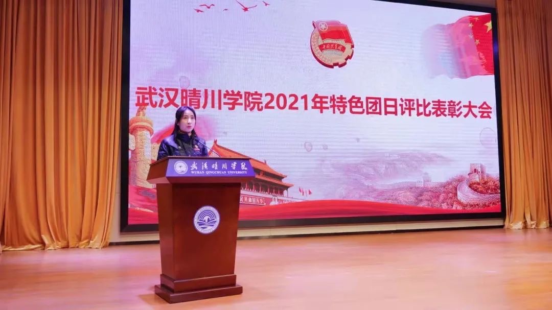获奖团支部代表现场进行了团日活动展示。其中,网媒2003团支部代表杨嘉怡以“时间轴”新颖形式来展示过去她们班活动,用“对话框”的方式来展望未来,展现了该班的创新性与实践性,体现了团日活动的风采。会计2001团支部的演讲融入了多方元素,既饱含浪漫与热血,亦有传承与发扬,在注入汉元素的同时,向晴川青年们展示了汉服服装与礼仪,弘扬中华民族的传统美德。团支部代表以多元化地形式展示了团支部的特色与风采,彰显出当代大学生奋斗的青春面貌和锐意进取的精神状态。