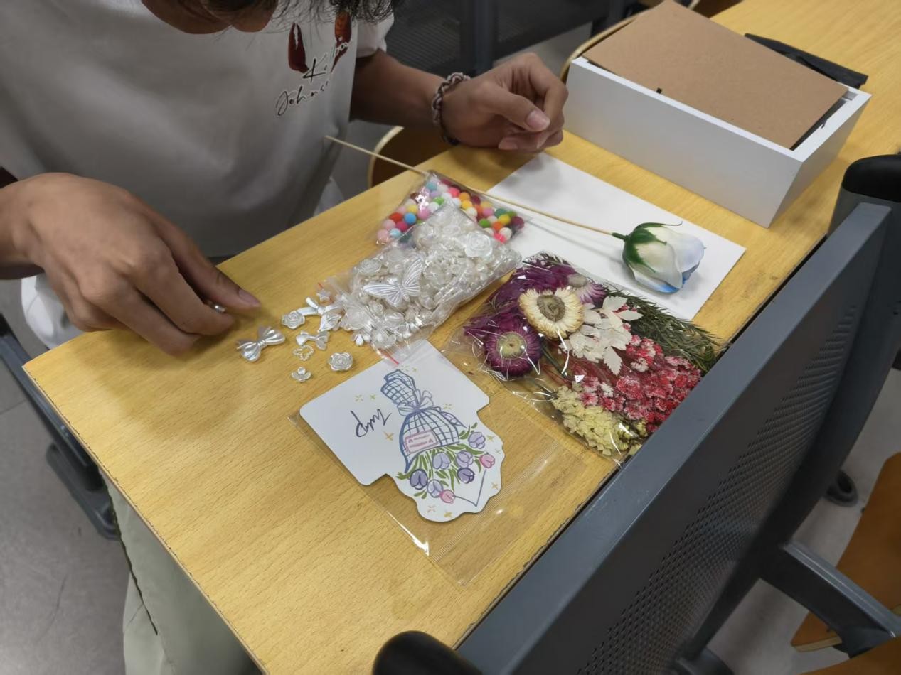 活动尾声,教室里仍回荡着欢笑声与剪刀裁剪丝带的细碎声响。班长表示:"希望通过这样的活动,让同学们学会用行动表达爱。"夕阳为教室镀上金边,那些定格在相框里的永生花,正如亲情般跨越时间,永远鲜活。