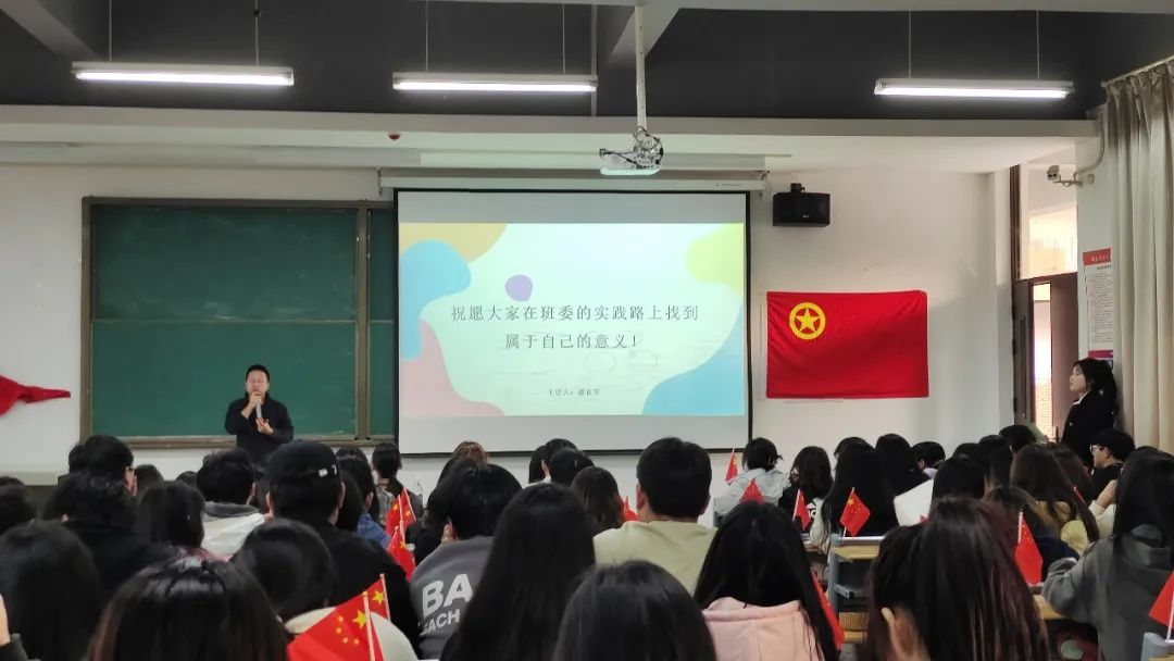 紧接着,漆良军书记通过管理的五大职能和目的进行讲解,并表示管理的目的应是提升效率与创造价值。其次,漆书记就关于班委的职责是什么向同学们发出提问,数媒2201团支书就漆书记的提问回答道:“班委的职责不仅仅是一份责任,更多的是带动同学们为班级、学院争取荣誉与奖章。”漆书记表示赞同,这不仅仅是班委的职责,也是班委的目的与意义。紧接着,漆书记通过讲述自己与学生学习打羽毛球的例子与自己的经验分享来告诉大家,作为班委不仅要以身作则、以己律人更要以德服人。