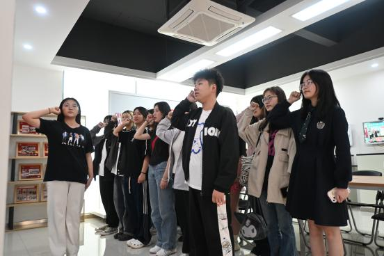 在一楼的团建活动室内,面对团歌、入团誓词,为进一步激发青年团员们作为共青团员的光荣感和使命感,督促青年时刻牢记初心使命,大家决定在此一同重温入团誓词。同学们举起右手,庄严起誓—做共产主义远大理想和中国特色社会主义共同理想的坚定信仰者和忠诚实践者,为实现中华民族伟大复兴的中国梦贡献青春力量。