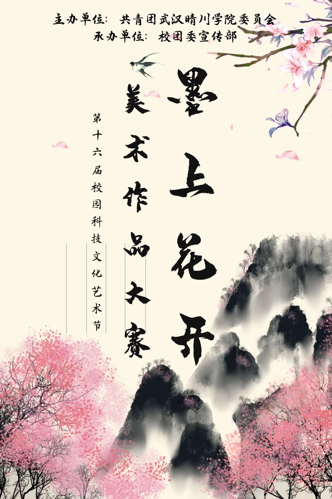 线下报名:2024年10月23日-2024年10月24日于晴川大超市门口帐篷处填写《第十六届校园科技文化艺术节“墨上花开”书画大赛报名表》;