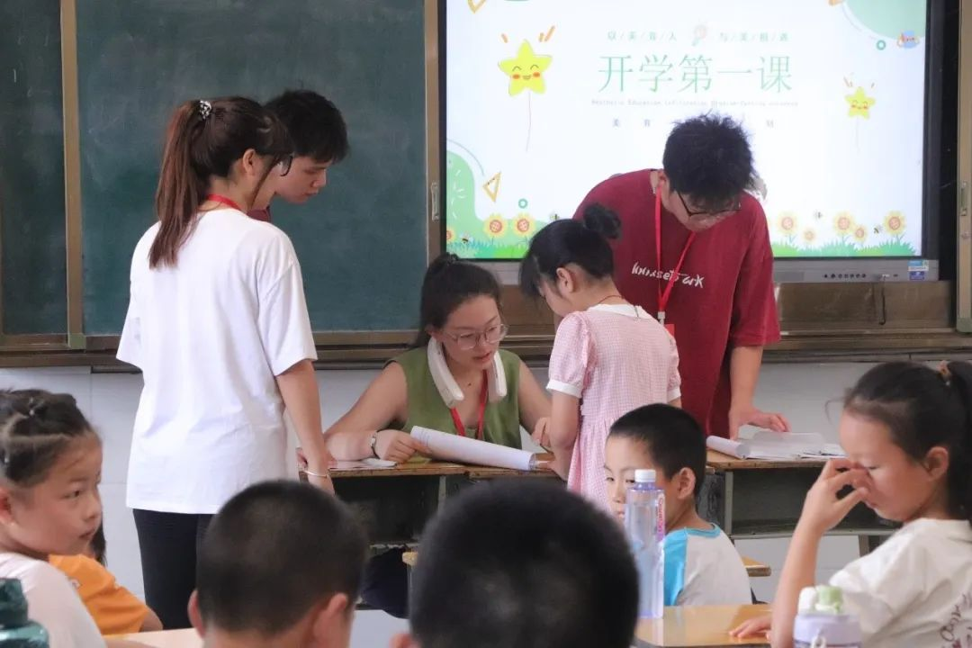 william威廉亚洲(中国)有限公司外国语学院联合设计工程学院成立“美育浸润计划”暑期社会实践团,于7月8日远赴咸宁市崇阳县青山镇开展支教活动。到达青山中学后,队员们迅速投入工作中,为92名小学生办理完成了报名手续,并组织开展学生家长见面会,赢得家长一致肯定。7月9日上午,队员们组织破冰小游戏以及安全专题教育并开启特色课程,带领孩子们一起进入了英语与数学相结合的跨界奇遇记。下午,队员们对孩子们进行课业辅导,引导大家学会快乐生活、快乐学习,提高学习效率。团队负责人刘苑铭表示,看着孩子们高高兴兴上课,快快乐乐回家的身影,心中充满对支教的动力。未来将持续通过教学创新为孩子们带去更多美的享受。
