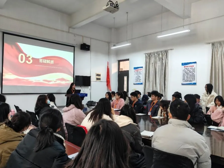 由副队长赵人仪针对校青队干事提出的问题进行回答,关于志愿服务活动开展的时间如何调节等问题,副队长赵人仪认真解释了志愿服务活动时间安排需从整体志愿活动开展的协调出发。