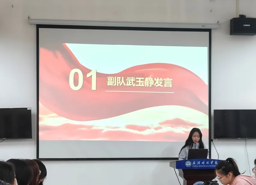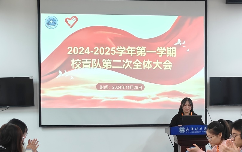 副队长武玉静发言,她带领校青队成员回顾本学期已经开展的活动,汇总并展示了2024年9月至今各组干事活动记录表,肯定了每一位干事为校青队做出的贡献,同时对各组的活动积极分子提出表扬,并激励大家积极参与志愿服务、倾情奉献。