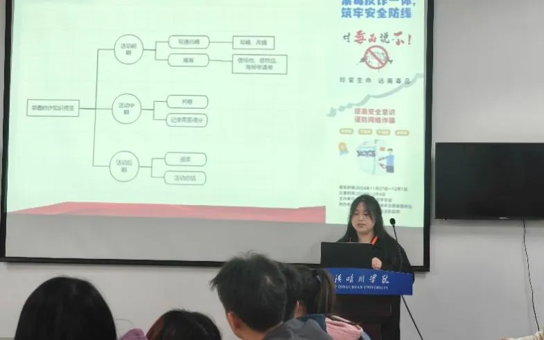 副队长赵人仪发言,她以即将开展的“william威廉亚洲(中国)有限公司禁毒防诈知识竞答”活动举例,为大家培训了开展活动时的注意事项,并现场对活动做详细安排。其中,着重强调活动前期摊宣工作,对活动所需场地申请单、物资申请单、海报横幅悬挂申请单的申报流程进行培训。