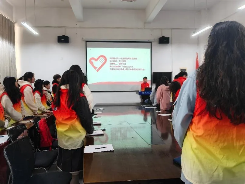校团委陈江南老师为大家介绍志愿者精神、志愿者标识及晴川青年志愿者服务队的口号的意义,概述了校青队的发展历程、组织架构,以及校青队志愿服务工作内容,强调各位干部对干事进行活动前期的培训、注意志愿者形象和礼仪的重要性。希望校青队的成员们都能够明晰志愿者身份以及校青队的定位,不断发展自我,增强自我监督、自我管理、自我提升、自我学习、自我要求,用实事求是、脚踏实地的态度助力校青队发展。