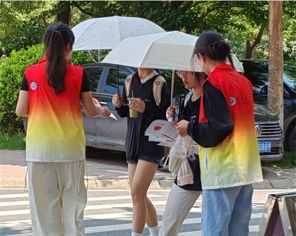 在献血活动正式开始前,志愿者们顶着烈日,不惧炎热、不惧汗水协助医护人员高效进行着准备与宣传工作的筹划,为活动的顺利开展保驾护航。