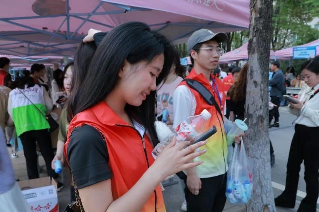 在志愿服务公益集市活动中共有两个主题——生态保护和学习雷锋。晴川青年志愿者服务队代表于4月14日下午在武汉传媒学院相关工作人员的带领下参观志愿服务集市,在学习中志愿者们增强了生态保护意识并将学雷锋精神融入到生态保护理念之中。